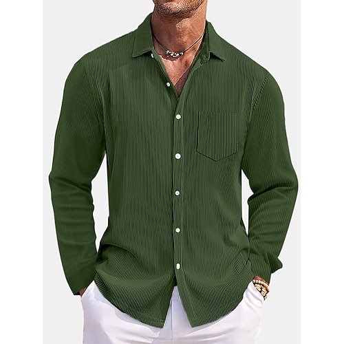 Per uomo Camicia Camicia casual Camicia di Velluto a Coste Camicia con Bottoni Blu Nero Bianco Rosso Blu marino Manica Lunga Semplice Collo ripiegato Casuale All'aperto Tasca Abbigliamento Moda Casual