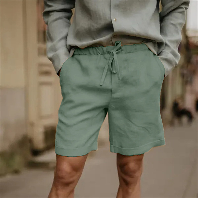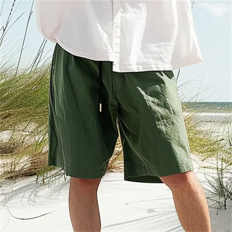 Men's Linen Shorts Summer Shorts Beach Shorts Pocket Drawstring Elastic Waist Plain Comfort Breathable Short Holiday Vacation Beach Hawaiian Boho ArmyGreen Black