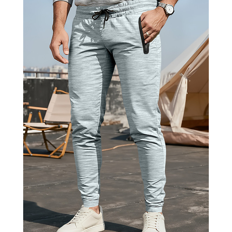 Men's Trousers Casual Pants Pocket Drawstring Elastic Waist Plain Comfort Daily Vacation Going out Fashion Casual Black White Micro-elastic