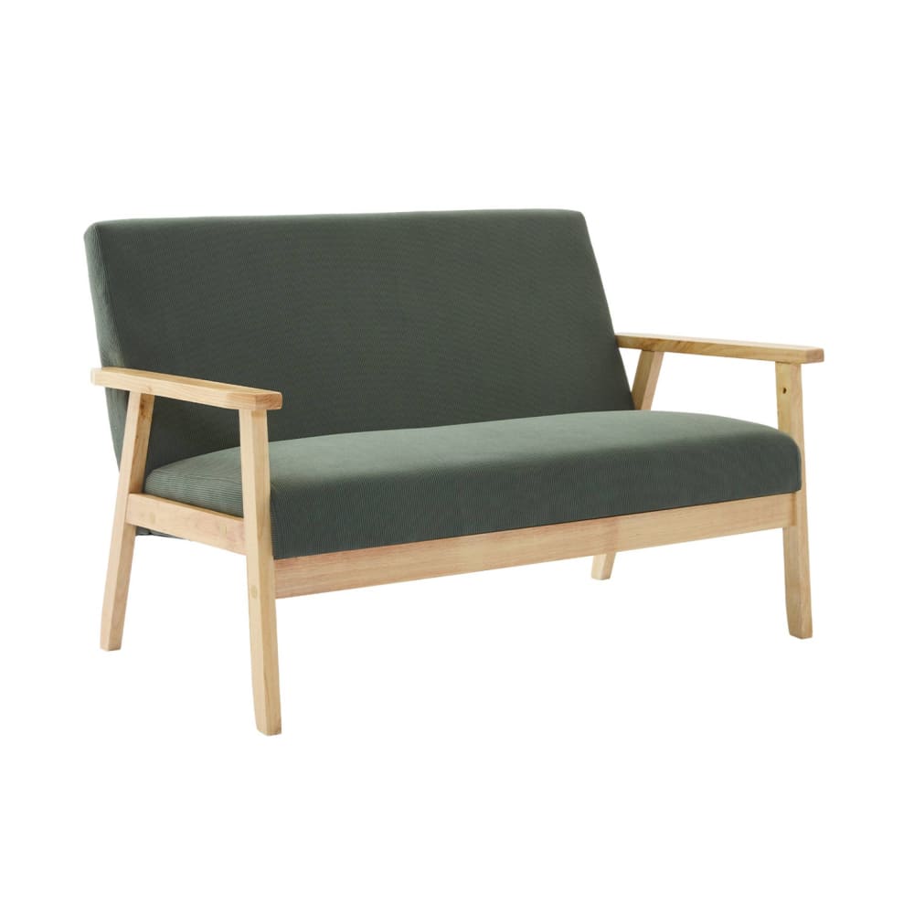 Divano a 2 posti, velluto a coste, gambe in legno kaki