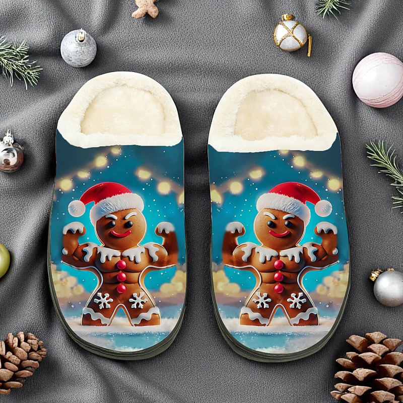 Men's Funny Christmas Slippers - Cute Rabbit Printed Warm Plush Slippers for Christmas Eve, Relaxing at Home and Gift Giving
