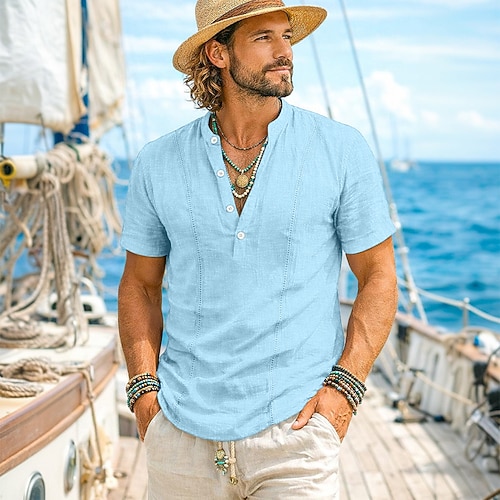 Per uomo Camicia Camicia di lino Camicia popover Camicia casual Camicia di cotone Semplice Vacanza Streetwear Bianco Blu reale Azzurro cielo Grigio chiaro Manica Corta Colletto alla coreana Estate