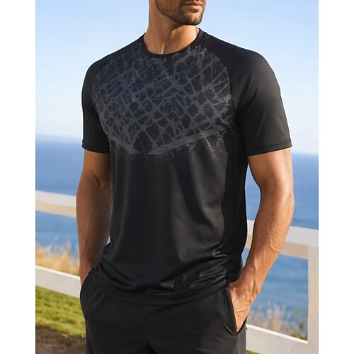 Per uomo Grafico T-shirt da corsa Maglia a compressione Maglia atletica Sport in alto Estate Manica Corta Asciugatura Rapida Traspirante Allenamento in Palestra Camminata Jogging Blu Nero Bianco