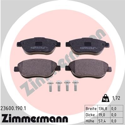 Jarrupalasarja, levyjarru, Etuakseli Zimmermann 23600.190.1 - citroën, fiat, lancia, peugeot - OE 16 111 407 80, 16 111 409 80, 16 118 388 80