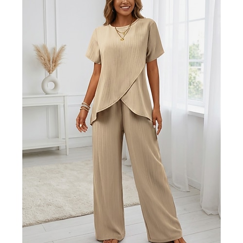 Per donna Maglietta Set di Pantaloni Bolero Top Manica Corta Girocollo Tinta unica Moda Streetwear Quotidiano All'aperto Vacanza Rosso Blu marino Verde Estate Vestibilità regolare Vestibilità comoda