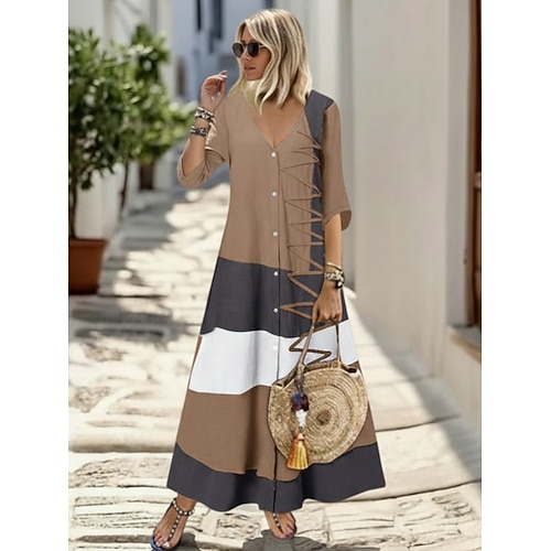 Per donna Abito Midi Vestito Estivo Abito a trapezio Vacanza Casual Spiaggia Feste Uscire Spiaggia Vestibilità comoda Grafico Geometrico Manica Corta Scollo a V Bianco - nero Marrone scuro Cenere
