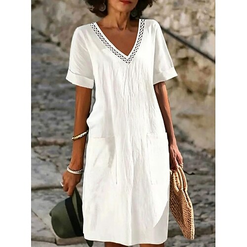 Per donna Abito al ginocchio Abito Bianco Vestito Casual Abito Estivo Elegante Moda Spiaggia Vacanza Ferie Vestibilità comoda Semplice Manica Corta Scollo a V Blu Nero Bianco Giallo Estate Primavera