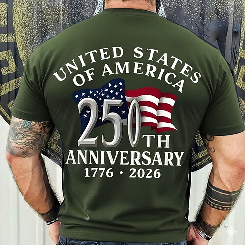 4 luglio 2026 250° Giorno della Memoria Maglietta a Manica Corta con Stampa 3D Bandiera Statunitense da Uomo Casual per Strada