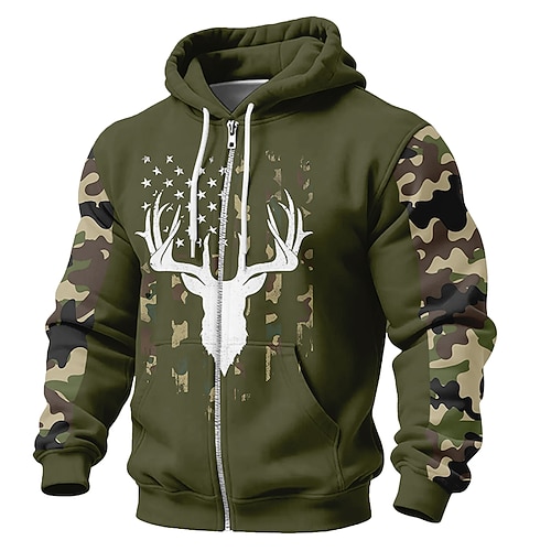 Felpa con cappuccio e zip con bandiera americana, sagoma di cervo, maniche mimetiche, da uomo, tattica, da caccia, mimetica patriottica, da esterno, abbigliamento, abbigliamento, s m l xl xxl xxxl