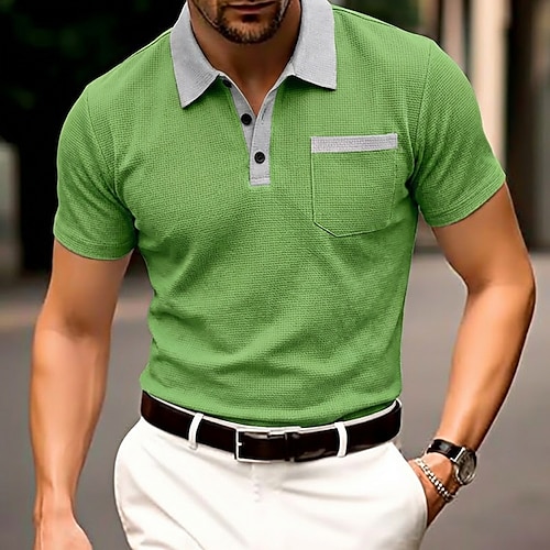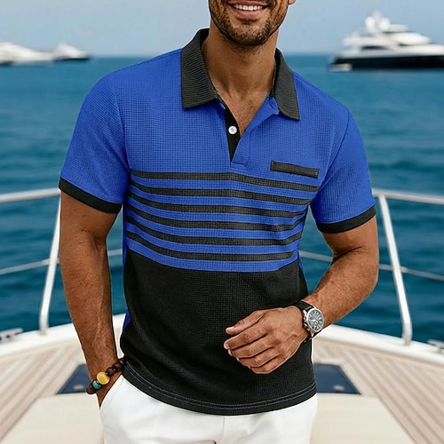 Per uomo Maglia da golf Polo a Maglia Waffle Casuale Affari Classico Manica Corta Moda Moderno Tinta unica A righe Tasca Blocco di colore Estate Primavera Vestibilità regolare Nero Bianco Blu reale
