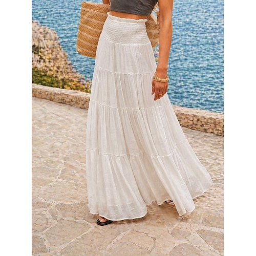 Per donna Gonna da vacanza Elegante Bohemien Vintage Moda Maxi Vita Alta Gonne Bianco Mandorla Estate