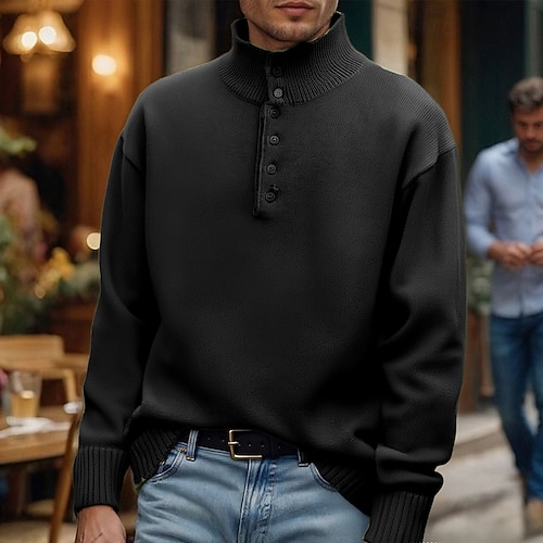 Per uomo Maglione Maglione a maglia A Coste Maglia Top Regolari Bottoni Lavorato a maglia Semplice Colletto Mao Moda Essenziale Vacanza Abbigliamento quotidiano Abbigliamento Autunno Inverno Nero