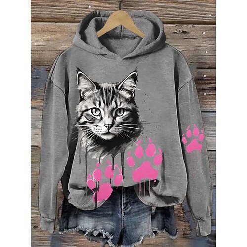 Per donna Felpa con cappuccio Grafico Gatto Elegante Caldo Attivo Manica Lunga Con Cappuccio Top Regolari Streetwear Abbigliamento Quotidiano Casuale Stampato Nero Bianco Rosa Blu Verde Primavera