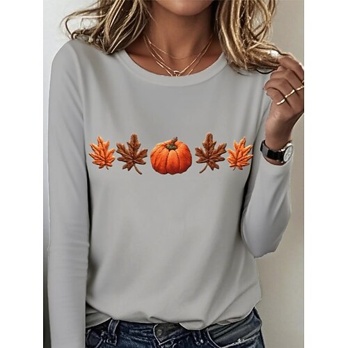 Per donna Maglietta Grafico Piante Vintage Elegante Classico Manica Lunga Girocollo Top Regolari Quotidiano Stampato Blu Nero Arancione Grigio scuro Grigio Primavera Autunno Inverno