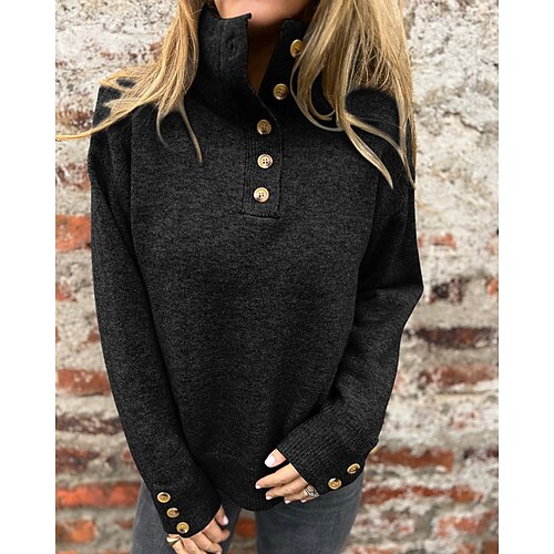 Per donna Felpa Maglione Vintage Moda Streetwear Tinta unica Dolcevita Bottoni Lavorato a maglia Manica Lunga Top Regolari Maglia Quotidiano Ferie Uscire Nero Blu Autunno Inverno