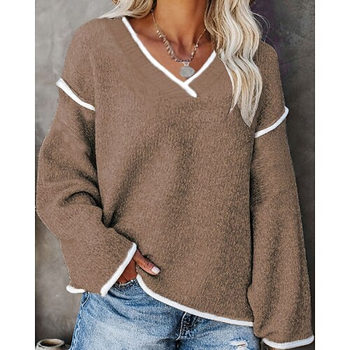 Per donna Felpa Maglione Streetwear Casual Tinta unica Scollo a V Patchwork Lavorato a maglia Manica Lunga Top Regolari Maglia Quotidiano Ferie Uscire Blu Nero Autunno Inverno