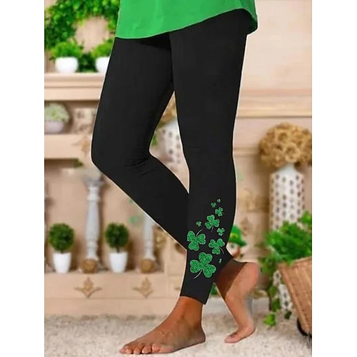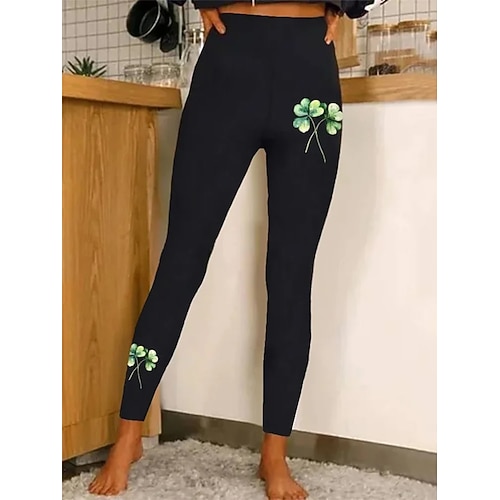Per donna Leggings Vacanza Essenziale Casual Lunghezza intera Vita AltaPantsGiorno di San Patrizio Grafico Trifoglio Comodità Morbido Confortevole Elasticizzato Quotidiano All'aperto Vacanza Nero