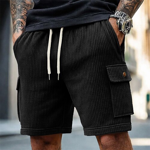 Per uomo Shorts Pantaloncini casual Pantaloncini di velluto a coste Coulisse Tasca Testurizzato Semplice Comodità Traspirante Lunghezza al ginocchio Casuale All'aperto Spiaggia Vacanza Moda Nero