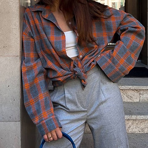 Per donna Camicia Blusa Plaid Semplice Elegante Vintage Classico Manica Lunga Colletto Polo Top Regolari Quotidiano Lavoro Ferie Arricciato Patchwork Tasca Verde primavera Nero Rosa Rosso Arancione