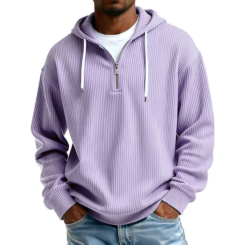 Men's Hoodie Corduroy Pullover Quarter Zip Hoodie Wine Red Black White Light Green Navy Blue Hooded Plain Zip Up Textured Casual Daily Sports Outdoor Polyester Streetwear Cool Sportswear Spring