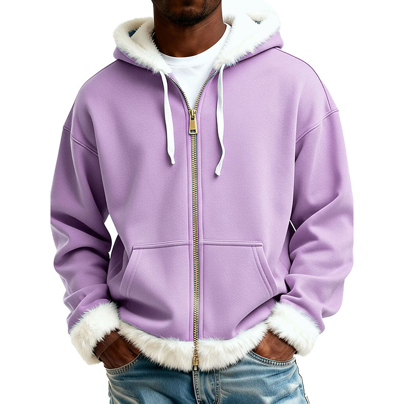 Men's Hoodie Fleece Hoodie Sherpa Fleece Hoodie Apricot Reddish brown Black Gray Light Blue Hooded Standing Collar Plain Oversized Casual Daily Holiday Polyester Fleece Streetwear Cool Sportswear