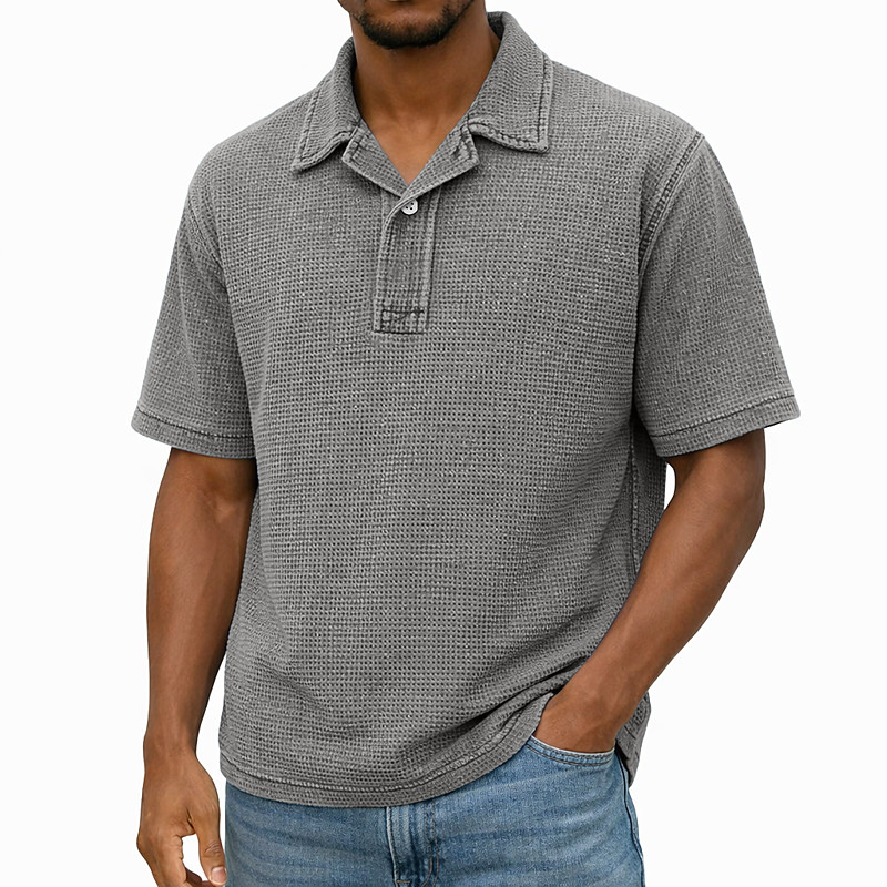 Men's Golf Shirt Waffle Knit Polo Shirt Casual Vacation Turndown Short Sleeve Fashion Modern Solid Color Textured Buttons Summer Spring Spring Summer Regular Fit Light Green Dark Blue Gray Light