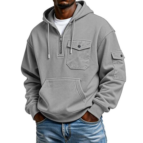 Per uomo Felpa con cappuccio Maglione Felpa con cappuccio e zip corta Felpa con cappuccio in pile Nero Blu marino Blu Reale Cachi Grigio chiaro Con Cappuccio Semplice Tasca Quotidiano Sport Outdoor