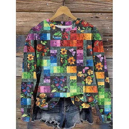 Per donna Pullover Floreale Grafico Caldo Classico Casual Manica Lunga Girocollo Top Regolari Casa Streetwear Abbigliamento Quotidiano Stampato Blu Giallo Rosa Verde Autunno Inverno