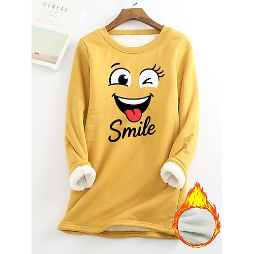 Per donna Pigiama felpato foderato in pile Felpa Pullover Pullover Felpe Grafico Caldo Streetwear Casual Manica Lunga Girocollo Top lunghi Casa Abbigliamento Quotidiano Casuale Stampato Giallo Rosa