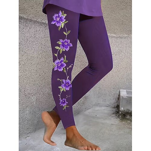 Per donna Leggings Abbigliamento da casa Vacanza Vintage Moda Lunghezza intera Vita Alta Floreale Grafico Stampa Calore Termico Morbido Traspirante Elasticizzato Formale All'aperto Vacanza Viola Rosa