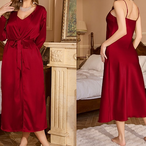 Per donna Abbigliamento da Casa Accappatoio Camicia da Notte Moda Casual Morbido Colore Puro Patchwork Vestiti Casa Vacanza Manica Lunga Scollo a V Nero Champagne Rosa Vino Blu marino Estate