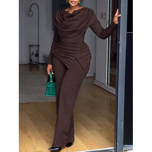 Per donna Normale Tuta Elegante Tinta unica Manica Lunga Gamba larga Girocollo Vita alta Vacanza Quotidiano Vestibilità regolare Nero Vino Marrone Primavera