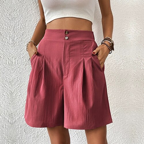 Per donna Chinos Shorts Vacanza Moda Streetwear Lunghezza intera Vita Alta Tinta unica Tasca Comodo Comodità Morbido Inelastico All'aperto Streetwear Aalbicocca Nero Rosso Cachi Estate Primavera