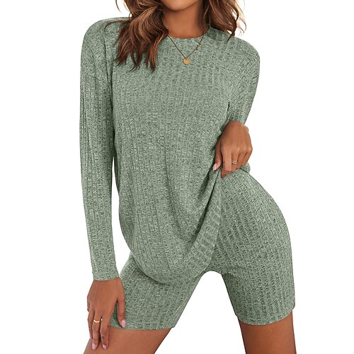 Per donna Attivo Streetwear Set di Pantaloncini Bolero Top Manica Lunga Girocollo Tinta unica All'aperto Vacanza Quotidiano Nero Rosso Cammello Primavera Vestibilità regolare