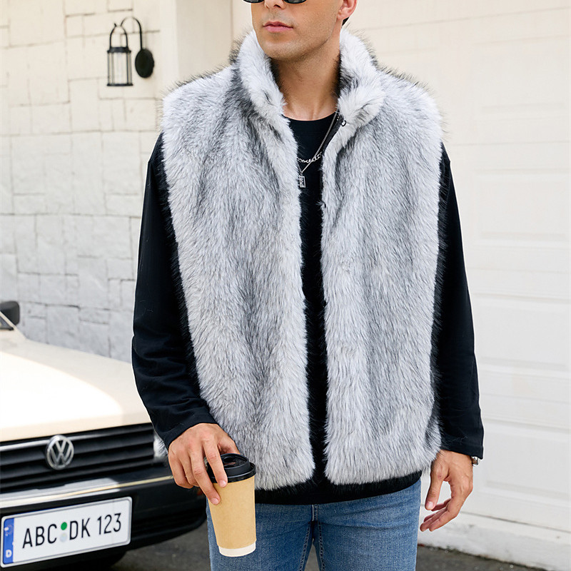 Men's Vest Faux Fur Gilet Outdoor Daily Fashion Casual Fall Winter Faux Fur Thermal Warm Comfortable Plain Standing Collar Regular Fit White Yellow Camel Gray Vest