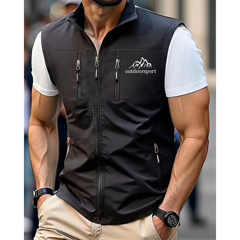 Men's Vest Gilet Fishing Vest Outdoor Daily Fashion Casual Spring Fall Pocket Print Polyester Comfortable Mountain Zipper Stand Collar Regular Fit Black Red Khaki Army Green Vest