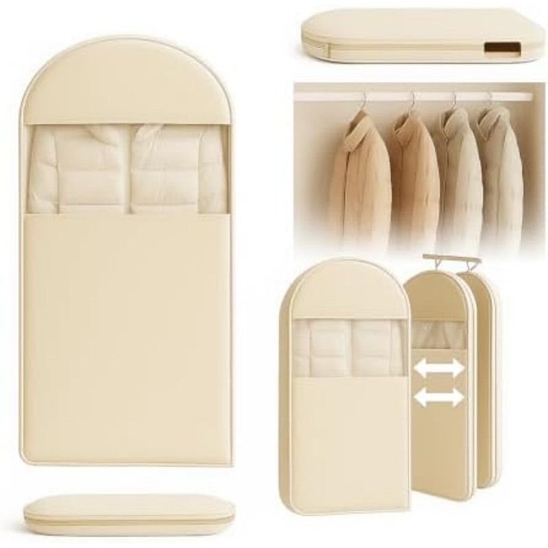 Space Saving Hanging Garment Bag with Self Compression Zipper, Dust Cover for Coats Down Jackets, Closet Clothes Organizer with Clear Window