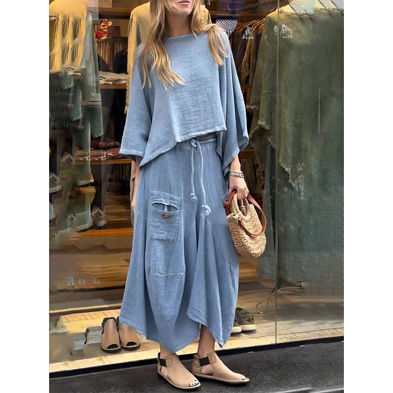 Women's Elegant Fashion Basic Pants Sets Long Sleeve Round Neck Solid Color Outdoor Work Casual Black White Yellow Summer Regular Fit