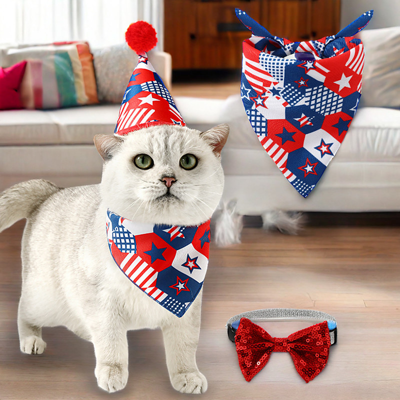 3 PCS Pet 4th of July Outfit Includes Pet Hat,Sequined Bow Tie And Scarf Accessories, Adjustable Headband for Kitten Puppy Small Dogs Cats,Pet Grooming Accessories for Independence Day