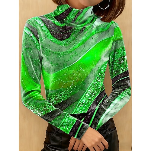 Per donna Maglietta Grafico Astratto Geometria Elegante Vintage Moda Manica Lunga Collo Alto Top Regolari Quotidiano Uscire Weekend Stampato Blu Giallo Viola Verde Autunno