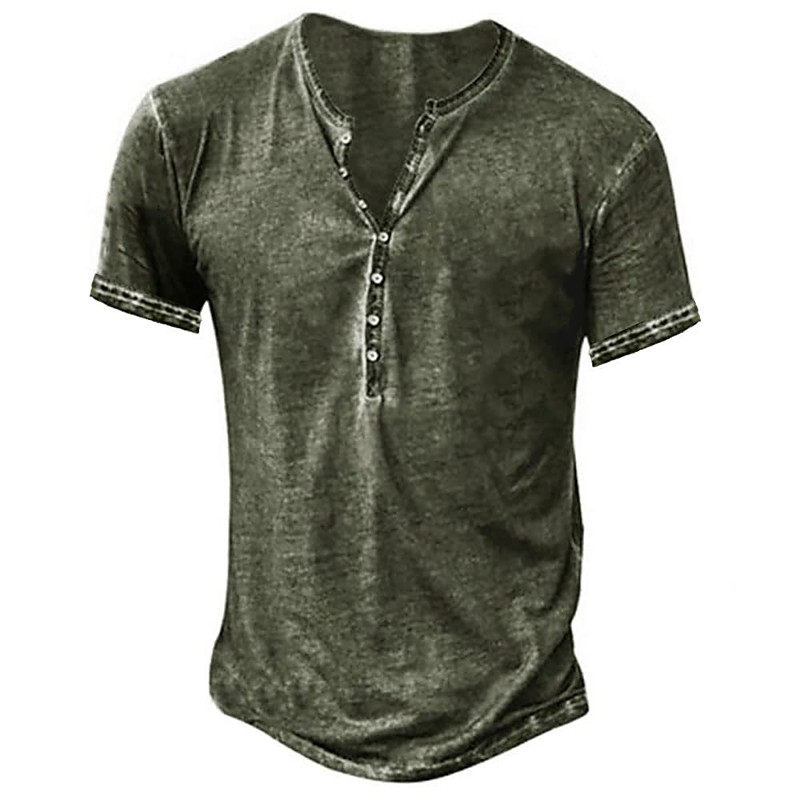 Men's Henley Shirt Tee Top Long Sleeve Shirt Short Sleeve Plain Vintage Fashion Basic Washed Henley Vacation Street Going out Summer Dark Brown Dark Grey Light Grey Henley T-Shirt