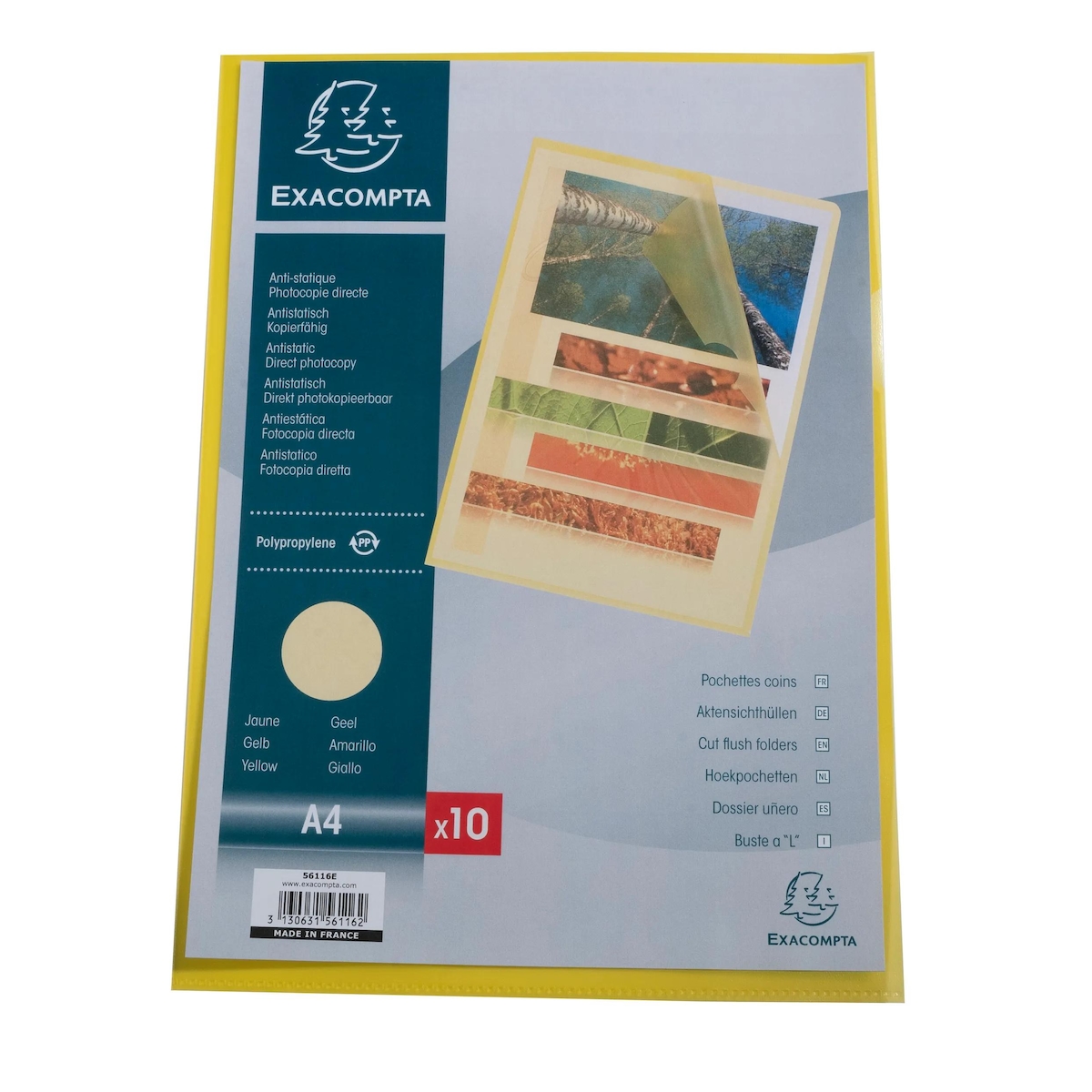 Exacompta 56116E 10x Packung mit 10 Aktensichthüllen aus genarbtem PP 120µ, für Format DIN A4 - Gelb