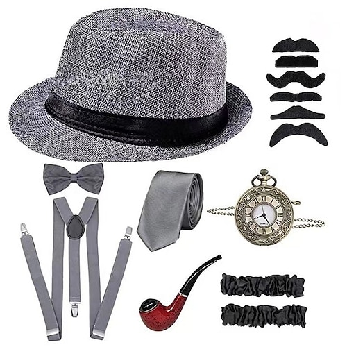 Set Vintage Anni Ruggenti Anni 1920 Set di accessori Fedora Il grande Gatsby Gentiluomo Costume Per uomo 7 PZ Halloween Carnevale Feste Mascherata Adulti Fiocco Cappello Cravatta Tutte le stagioni