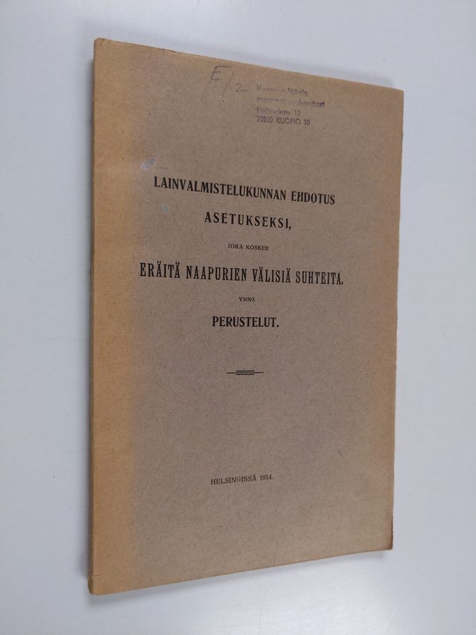 Lainvalmistelukunnan ehdotus asetukseksi, joka koskee eräitä naapurien välisiä suhteita - ynnä perustelut
