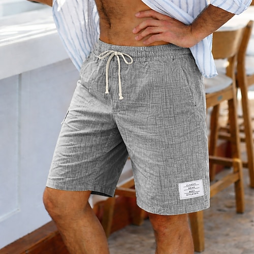 Herren Shorts Leinenshorts Sommershorts Kordelzug Tasche Elastischer Bund Einfach Komfort Atmungsaktiv Kurz Lässig Täglich Ferien Mode Klassicher Stil Schwarz Weiß