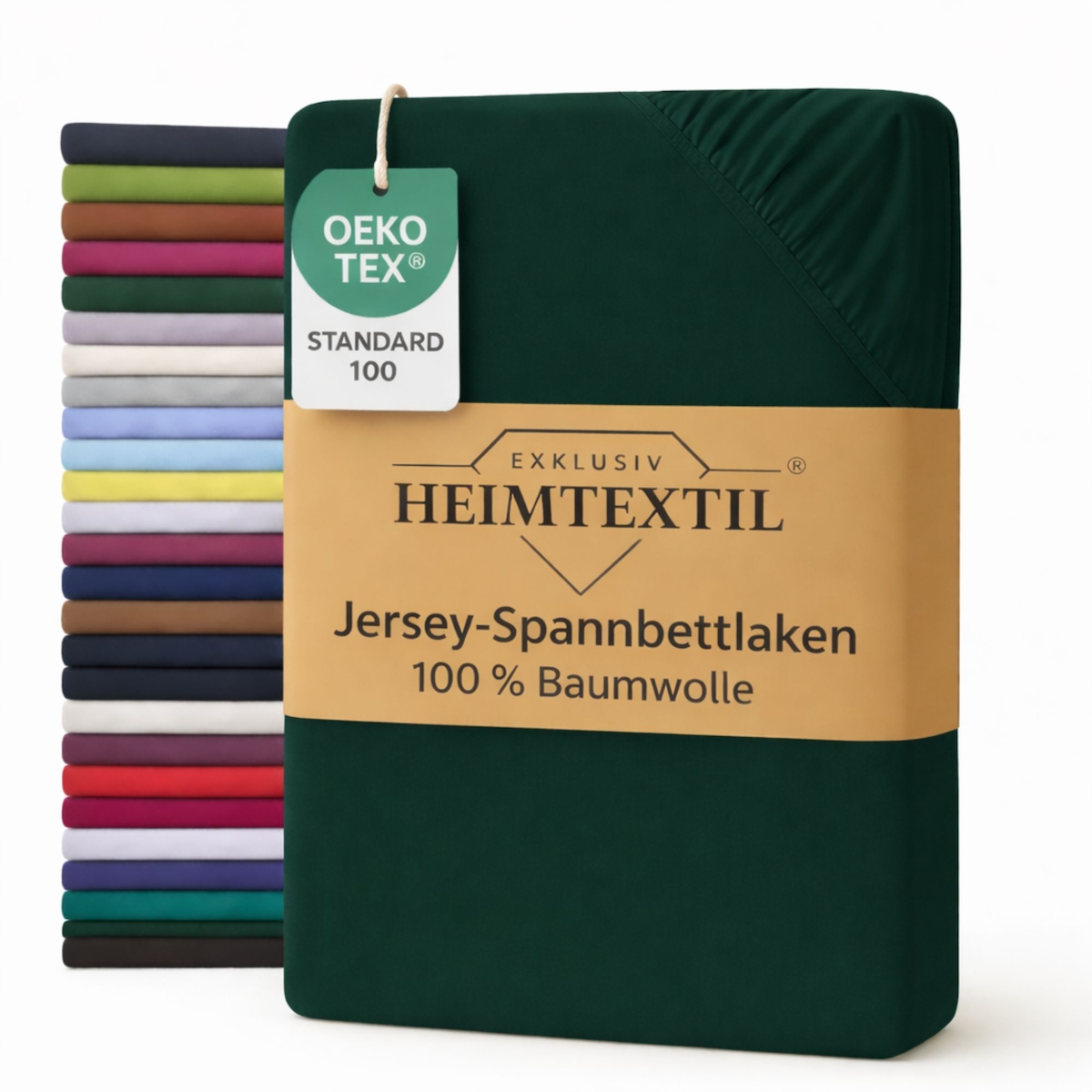 EXKLUSIV HEIMTEXTIL Jersey Spannbettlaken 180 x 200 cm Dunkelgrün 100% Baumwolle Öko - Tex Zertifiziert Bed-Sheet Bettlaken Spannbetttuch