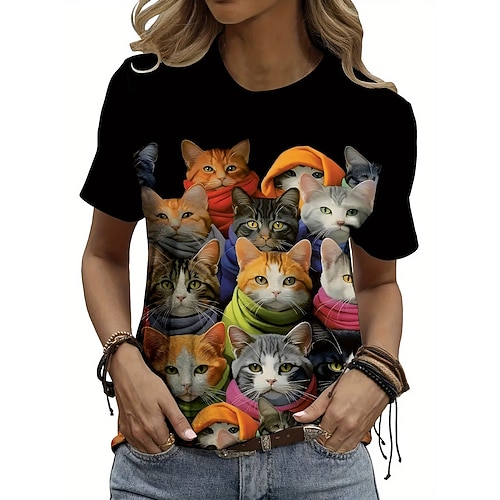 Per donna Maglietta Grafico Animale Vintage Elegante Classico Manica Corta Girocollo Scollo a V Top Regolari Quotidiano Weekend Stampato Nero Bianco Grigio scuro Albicocca Estate Primavera Autunno