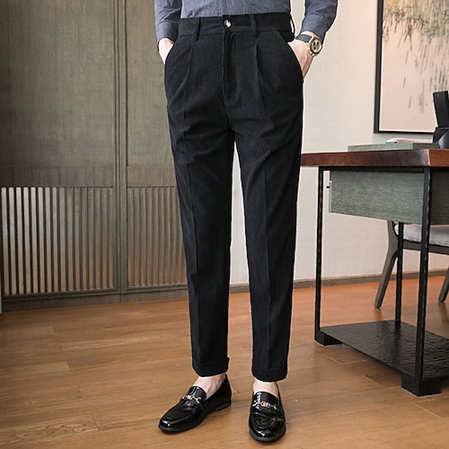 Per uomo Pantaloni Eleganti Pantaloni in velluto a coste Pantaloni Chinos Tasca Bottoni Semplice Comodità Formale Feste Lavoro Moda Stile Classico Nero Blu Micro-elastico