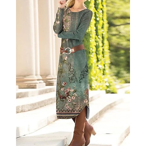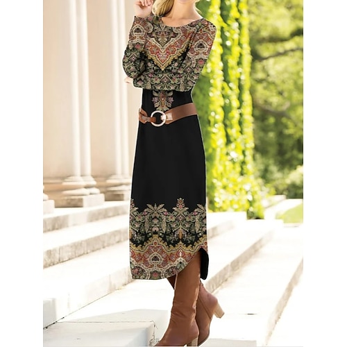 Per donna Abito maxi Tubino Abito a Tubino Festa Casual Boho Feste Ospite di nozze Quotidiano Vestibilità regolare Floreale Grafico Paisley Manica Lunga Girocollo Nero Marrone Verde Primavera Autunno