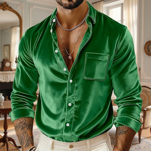 Per uomo Camicie Camicia con colletto Camicia con bottoni Camicia da ballo Camicia in raso di seta Liscio Matrimonio Feste blu navy Nero Bianco Giallo Manica lunga Colletto Abbigliamento